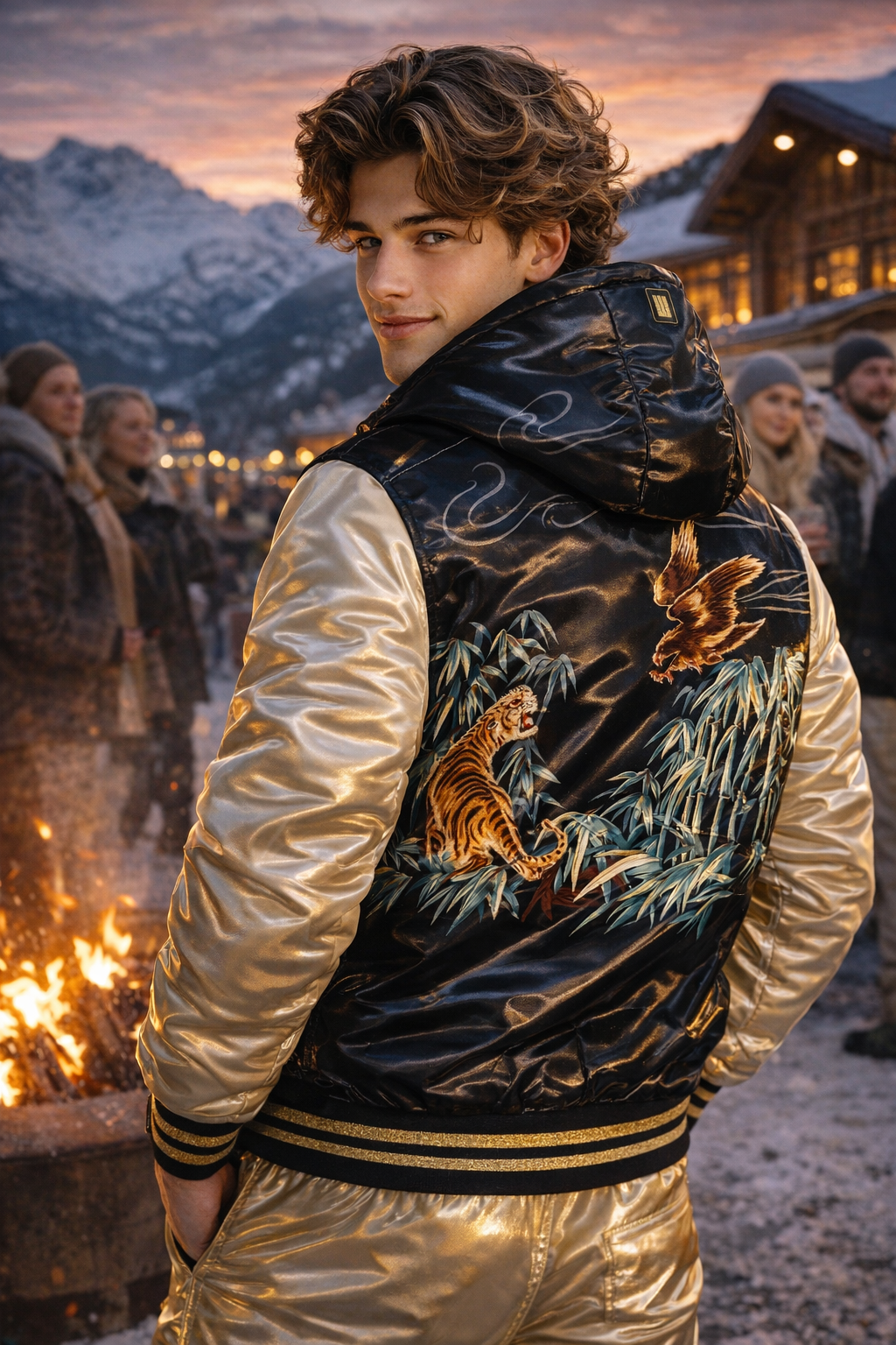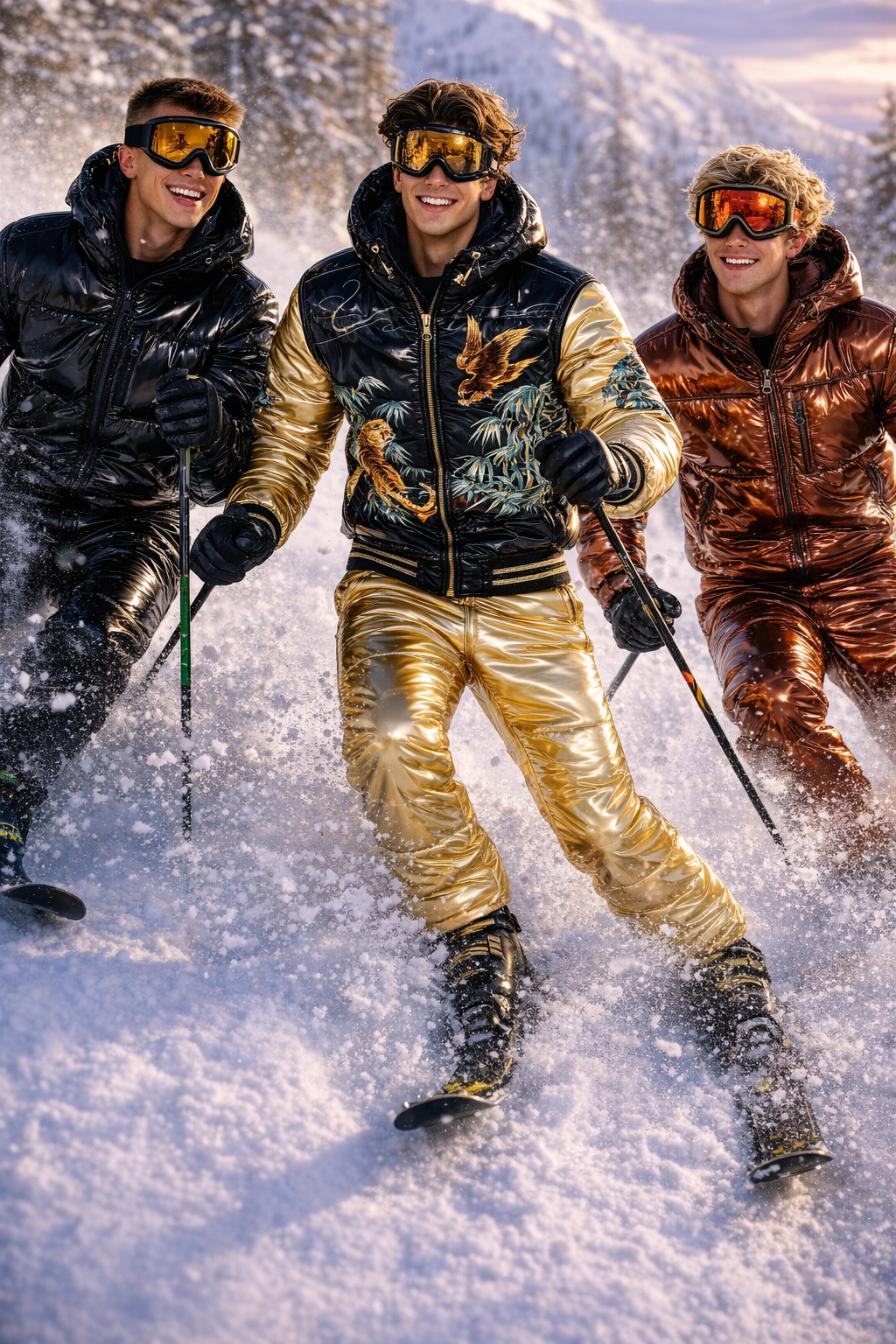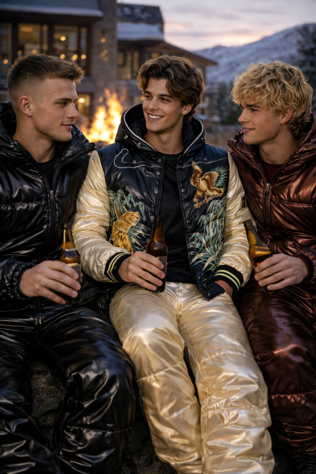 Satin-overfladen føles glat, rich og kompromisløst dristig – et bevidst brud med matte, anonyme bjerguniformer. Brug den lynet helt op på pisten, og løsne den, når natten tager over. Fra første lift til sidste drink holder den sin tilstedeværelse.