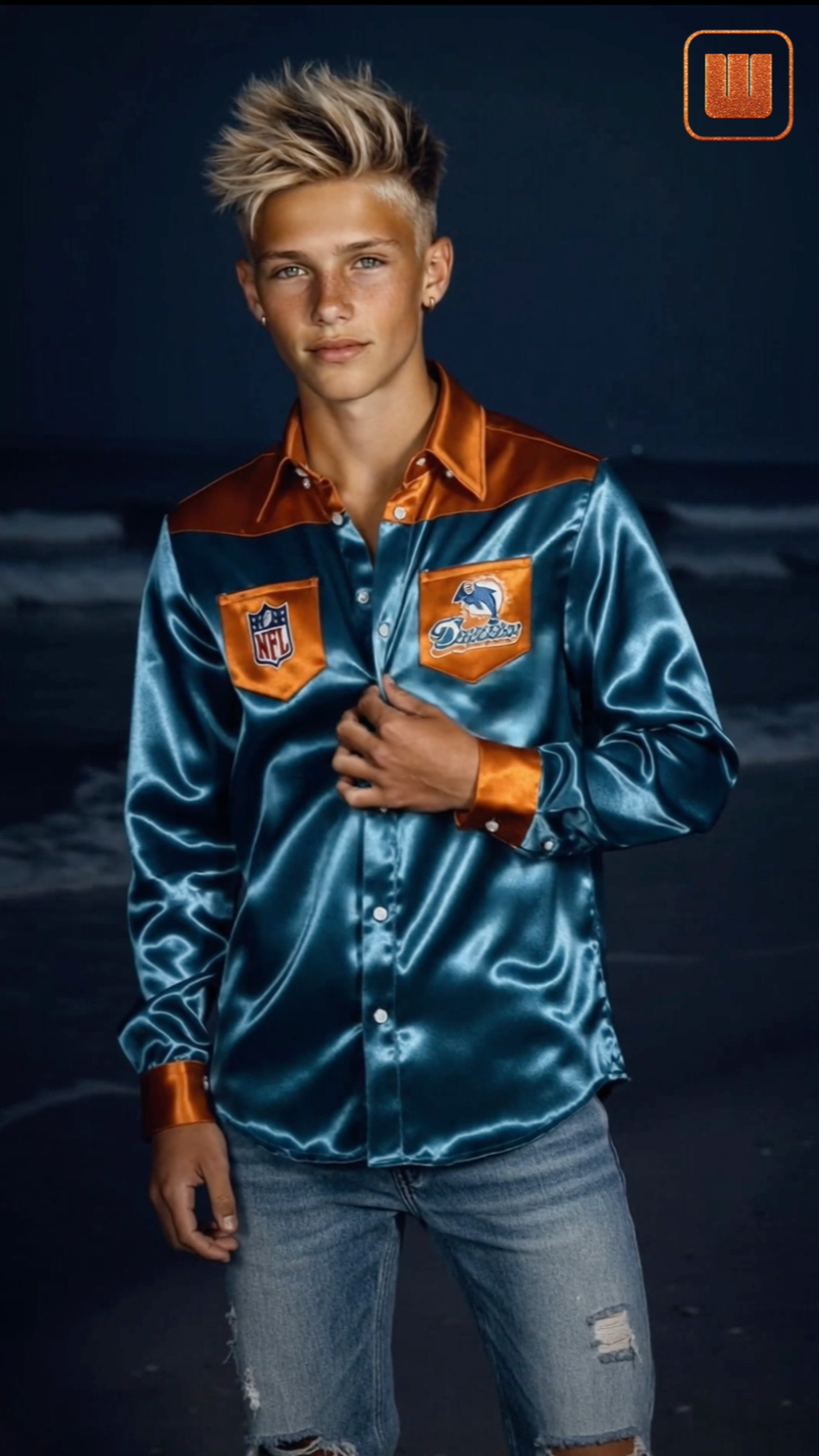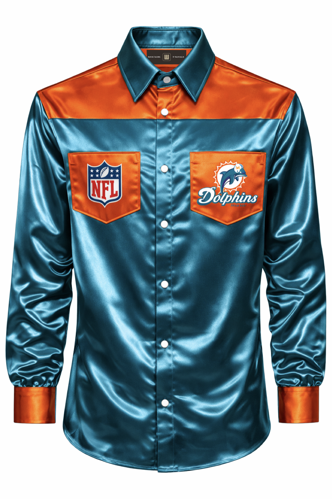 Skabt i ultra-smooth acetate satin med den der flydende glans, hvisker denne Miami Dolphins-piece ikke fan-wear — den flexer det.