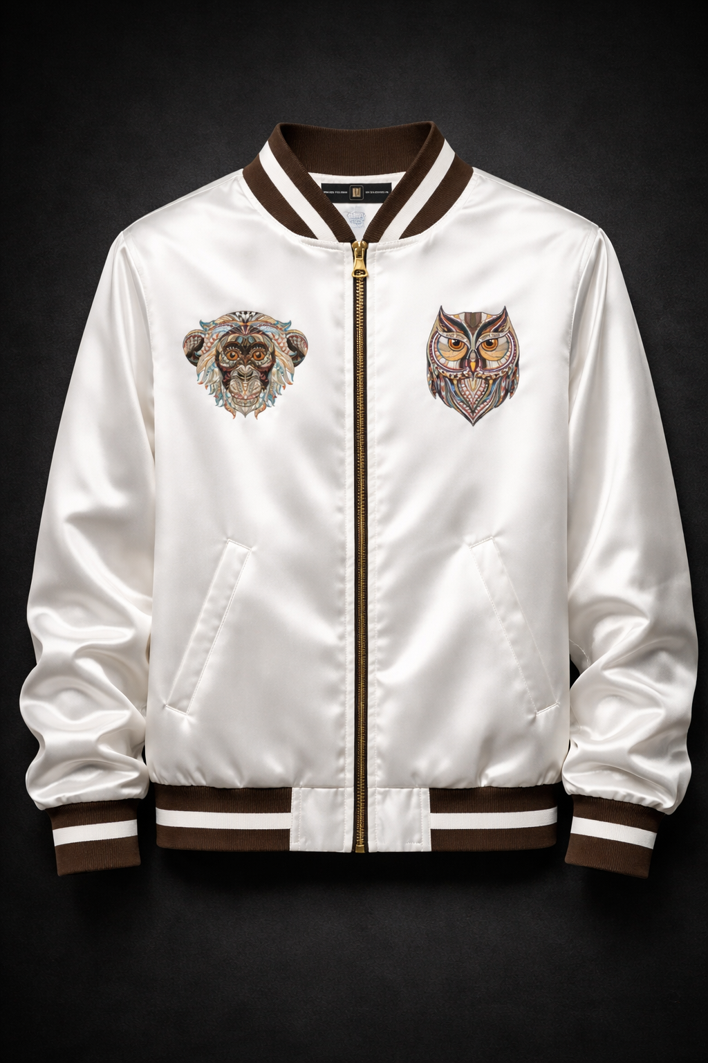 Fun, Wisdom & Strength Silk Satin Bomber Jacket